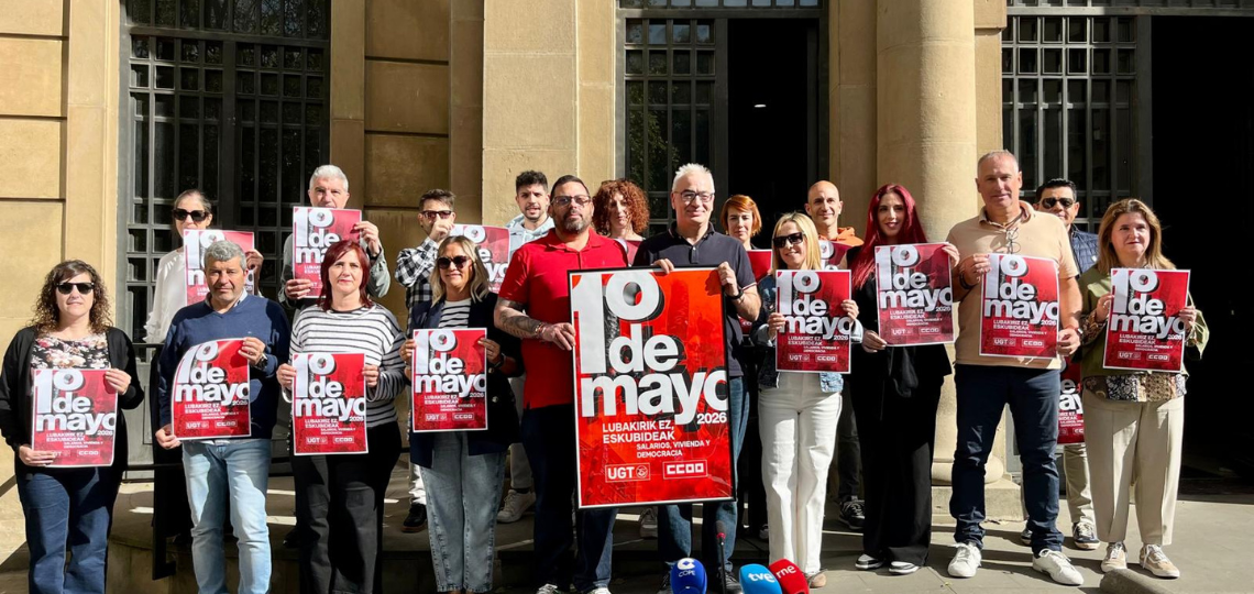UGT y CCOO se manifestarán de manera conjunta el próximo Primero de Mayo en Pamplona bajo el lema ‘Derechos, no trincheras. Salarios, vivienda y democracia’ en defensa de la igualdad, la convivencia y los derechos humanos frente a quienes promueven el odio y pretenden dividir a la sociedad.